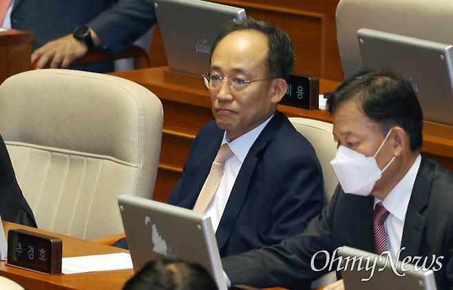 | ▲ 12.3 불법계엄 당시 국회의 계엄 해제 표결을 방해한 혐의를 받는 추경호 국민의힘 의원이 13일 오후 서울 여의도 국회에서 열린 본회의에 참석하고 있다. |