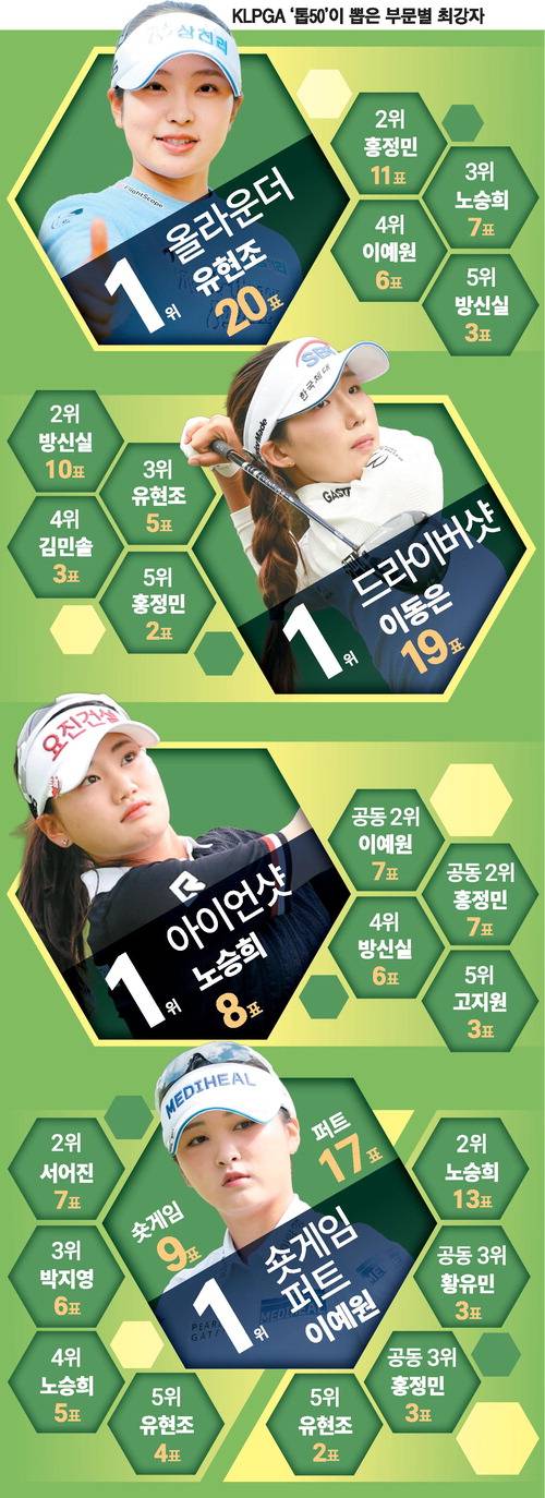 두 부문 모두 이예원에게 표를 던진 한 선수는 "KLPGA 투어에서 파를 가장 쉽게 잡는 선수가 이예원이다. 이예원처럼 퍼트와 숏게임을 한다면 매년 3승 이상을 거둘 수밖에 없다"고 설명했다.