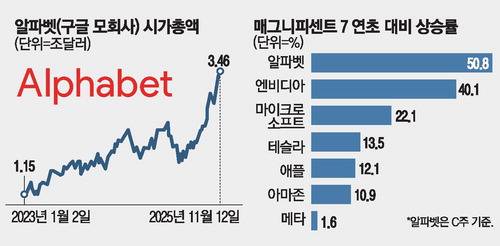 '인공지능(AI) 올라운더' 알파벳(구글 모회사)이 올해 주가가 50% 넘게 오르며 '매그니피센트 7' 중 가장 높은 상승률을 보이고 있다. 검색엔진 구글을 기반으로 거대언어모델(LLM), 클라우드 분야를 발전시키는 데다 하드웨어 부문 기술력도 키우고 있어 AI 경쟁에서 앞서나간다는 평가다.
