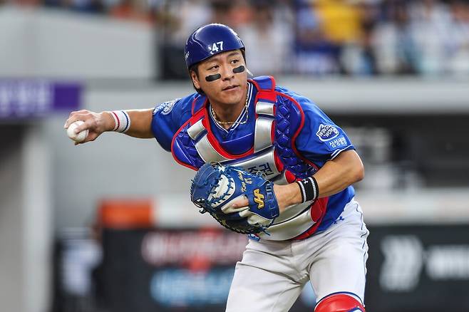 강민호가 '영혼의 파트너' 원태인(삼성 라이온즈)에게 경고를 날렸다. 아들 강이한군이 선수 못지않은 놀라운 투구폼을 선보이며 '푸른 피 에이스' 자리를 위협(?)했기 때문이다.