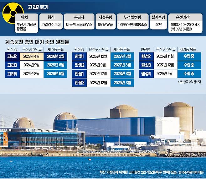 한국수력원자력이 계속운전 심사를 신청한 원전은 고리 2호기를 포함해 총 10기로 국내 전체 원전(설비 용량 기준)의 30%가량이다.