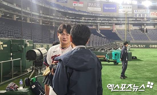 김서현은 "한국과 미국 야구와 달리 일본 야구는 팀 플레이가 더 많이 보이다 보니까 호감이 생겼다고 말했다"며 "최근 좋지 않은 투구를 펼쳤는데 다시 도쿄돔에서 뛸 수도 있으니까 주말 한일전 때 열심히 던지겠다고 전했다"고 인터뷰 내용을 설명했다.