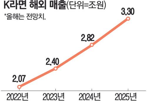 이은희 인하대 소비자학과 교수는 “글로벌 푸드로 우뚝 선 K라면이 선전하면서 김치를 비롯해 다른 K푸드 매출도 끌어올려줄 것”이라며 “해외 매출 3조원을 넘어 5조원 시장으로도 무난히 안착할 것”이라고 했다.