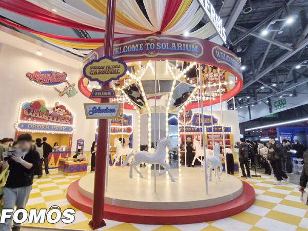 제1전시장 출입구에서 바로 마주하는 부스 면에는 '테르비스'와 캐릭터 브랜드 웹젠 프렌즈를 연계해 놀이동산을 연상케하는 이벤트 존을 완성했다. 반짝이는 전구로 꾸며진 간판과 회전목마 포토존으로 가족 단위 관람객의 호응을 얻었다.