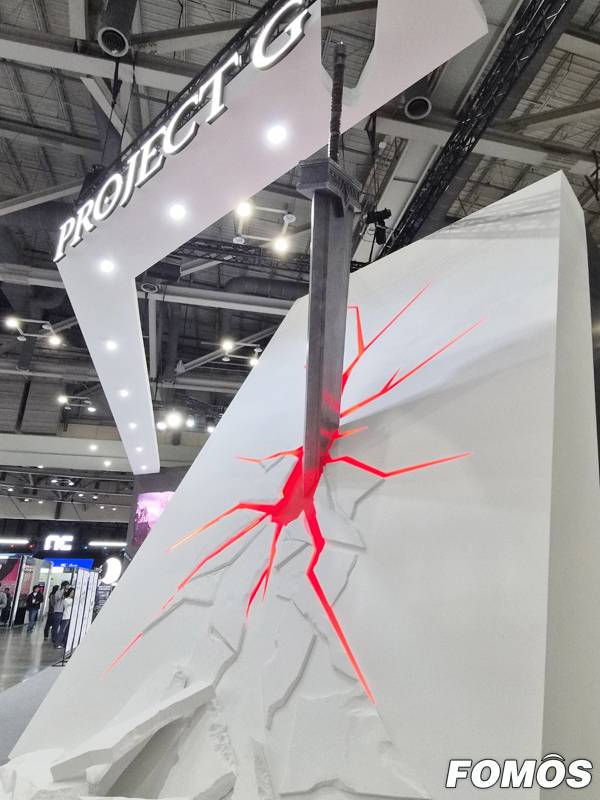 뮤 IP 신작 '프로젝트 G(가제)'의 흔적도 남겼다. 전시 부스 내에 실제 게임 캐릭터가 사용하는 무기로 대형 조형물을 설치해 선보였다.