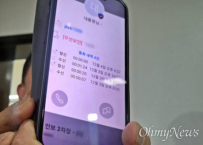 | ▲ 김병기 더불어민주당 의원이 2024년 12월 6일 오후 국회 정보위원장실 앞에서 홍장원 국가정보원 1차장이 제시한 통화기록 사진을 취재진에 내보이고 있다. 윤석열 대통령의 비상계엄 선포 전후인 지난 3~4일, 홍 차장과 윤 대통령 사이의 수발신 기록이 4건 남아 있다. |