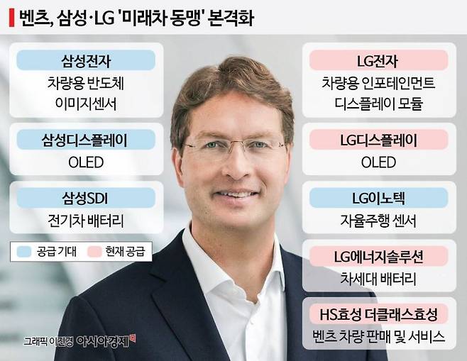 삼성과 메르세데스-벤츠의 전기차·전장 협력이 구체화되면 삼성 전장 사업에도 새로운 성장 계기가 마련될 것으로 전망된다. 삼성SDI는 각형 배터리와 46파이 원통형 배터리 등에서 기술력을 인정받고 있으며 전고체 배터리 기술도 업계 최고 수준으로 평가받는다. 삼성SDI가 벤츠와 차세대 배터리 공급망을 구축할 경우 벤츠 BMW 아우디 등 독일 3대 프리미엄 완성차 모두를 고객사로 확보하게 된다.