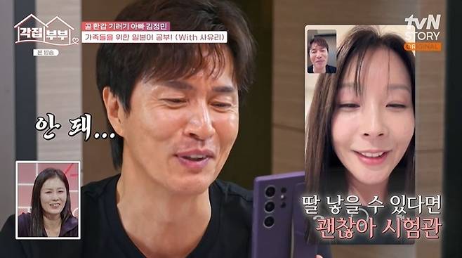 이날 김정민은 가족들과 일본어로 대화하기 위해 사유리에게 일본어를 배웠다. 사유리는 루미코와 영상통화를 하는 김정민에게 일본어를 알려주며 "시험관 하고 싶어"라고 하라고 했다. 이를 들은 루미코는 웃음을 터뜨렸고, "딸 낳을 수 있다면 시험관 괜찮아"라고 화답했다.