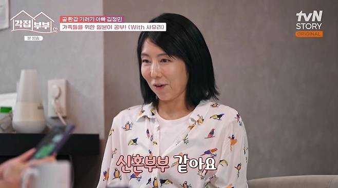 김정민, 루미코의 통화를 지켜본 사유리는 "신혼부부 같다"라고 했고, 김정민은 "우리 사이좋다"라고 자랑했다. KCM이 "각집 부부하면 신혼부부처럼 되나 보다"라고 하자 김정민은 "(아내가) 일본 가기 전엔 이런 대화를 할 일이 없었는데, 재미있는 것 같다"라고 밝혔다.