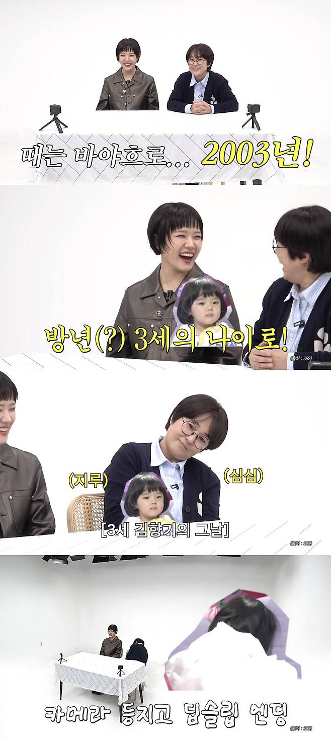 송은이는 "김향기 씨랑 오늘 디저트 리뷰를 할 건데 사실 저희가 구면이다. 저는 그날을 완벽히 기억을 하는데 향기 씨는 기억할지 모르겠다. 때는 뱌야흐로 2003년으로 거슬러 올라간다"라며 지난 2003년 SBS 예능 '진실게임'을 언급했다.