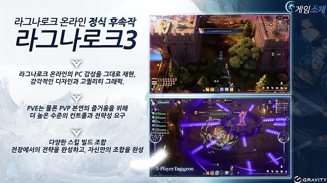 라그나로크3는 라그나로크 온라인의 정식 후속작으로 개발 중인 대규모 MMORPG다. 원작의 감성을 현대적으로 재해석해 클래식한 아트 스타일과 명확한 전투 손맛을 강화한 것이 특징이다. 대규모 PVE·PVP 전투를 중심으로, 자유로운 스킬 빌드와 전략적 조합을 통해 플레이어만의 전투 스타일을 구축할 수 있도록 설계됐다.