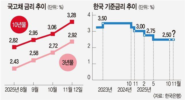 국고채 금리 상승은 기준금리가 더 인하되지 않을 것이라는 예상 때문이다. 국고채 금리는 미래의 평균 금리를 미리 반영한다. 기준금리 인하 사이클이 종료됐다는 인식이 확산하는 순간 시장은 국채 금리를 밀어 올린다.