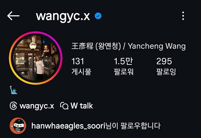 "류현진 선배한테 할 질문 잔뜩 준비"→괴물과의 만남도 설렌다…"2년 전부터 SNS에 한글이름 '왕옌청' 썼어"