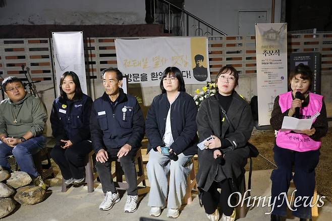 | ▲ 13일 오후 대구 중구 남산동 전태일 열사 옛집에서 열린 55주기 추모식에서 지역 노동자들과 시민단체 활동가들이 자신의 이야기를 증언하고 있다. |