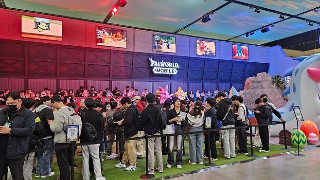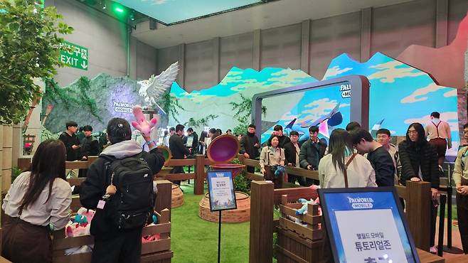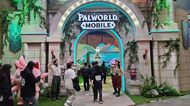 관람객은 부스 내 '팰 사냥 존'과 '팰 포획 존'에서 게임 속 콘텐츠를 현실에서 즐기고 디지털 스탬프를 획득할 수 있다. '알파 테스트 신청 이벤트'에 참여하면 추가 스탬프를 받을 수 있으며 모은 스탬프를 팰월드 모바일 그립톡, 키링 등 다양한 굿즈로 교환할 수 있다.