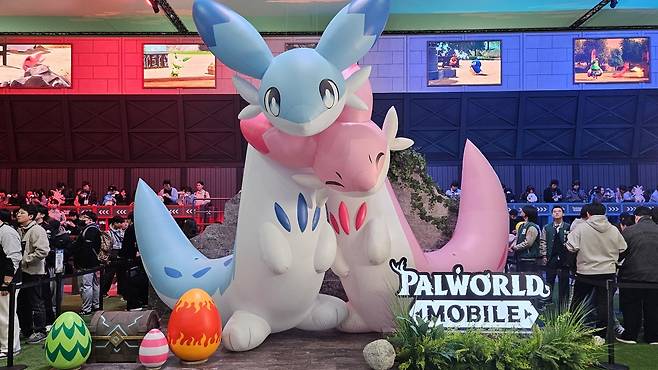 지난 크래프톤 부스의 핵심이 '인조이'였다면 올해는 '팰월드 모바일'이다. 팰월드 모바일은 일본 게임 개발사 포켓페어의 '팰월드' IP를 기반으로 개발 중인 신작이다. 크래프톤은 팰월드 모바일의 세계관과 탐험의 기분을 느낄 수 있도록 부스 콘셉트를 기획했다.