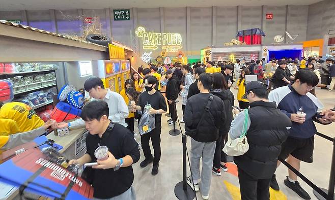 체험형 휴게공간 '카페 펍지'에서는 수제 도넛 브랜드 올드페리도넛과 협업한 한정 메뉴를 선보인다. 관람객은 다양한 이벤트 참여로 스탬프 랠리 미션을 완료해 배틀그라운드 우산, 쿠션, 목베개, 글라스컵 등 풍성한 굿즈를 받을 수 있는데 웃음 가득 북적였던 지스타 2025 크래프톤 부스를 사진으로 담아봤다.