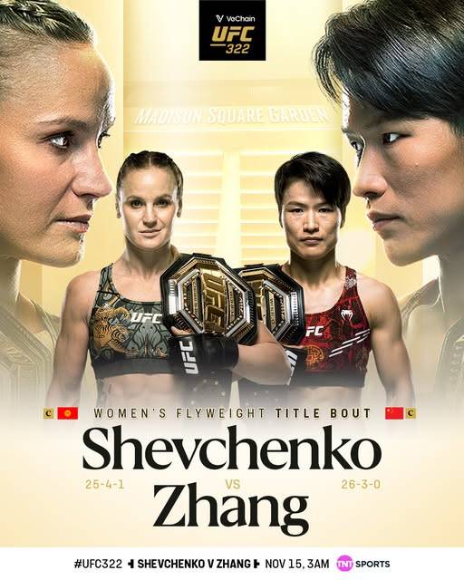 장웨이리와 셰브첸코는 16일(이하 한국시간) 미국 뉴욕 매디슨 스퀘어 가든에서 열리는 'UFC 322' 여성 플라이급 타이틀전에서 맞붙는다.