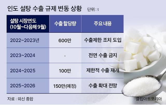 ‘로이터통신’ 또한 같은 날 인도 정부 관계자의 말을 인용해 “(설탕 수출 확대에 관한) 최종 결정이 곧 내려질 예정이고 인도 정부가 150만t의 수출을 허용할 계획”이라고 전했다. 앞서 인도 정부는 2023∼2024년 연이은 가뭄으로 국내 설탕 생산이 줄자 수출을 전면 금지했고 지난해에는 100만t만 허용했다.