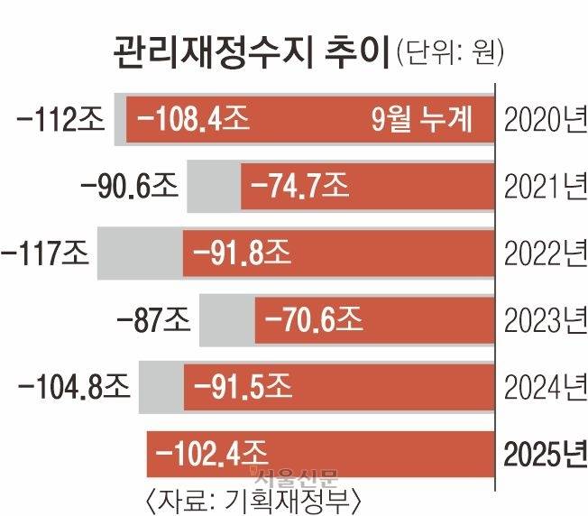 나라살림 ‘경고등’… 102조 적자로 팬데믹 이후 역대 두 번째 규모