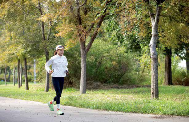 그 사이에 운동복 차림으로 달리고 있는 권은주 감독(이하 권은주)이 있다. 불과 이틀 전, 그는 미국 시카고마라톤 풀코스(42.195㎞)를 뛰고 돌아왔다. 완주의 피로나 긴 비행의 여독을 풀 새도 없이 운동 유튜브 촬영을 이어가는 것이다. 피곤할 법도 한데, 그의 표정은 밝고 발걸음은 경쾌하다. 과연 마라토너의 지구력이다. 저 작은 체구 어디에 42.195㎞를 달리는 에너지가 숨어 있을까?