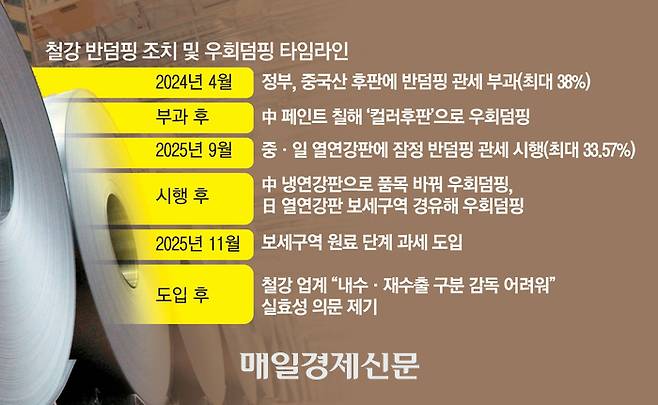 철강 업계 관계자는 “현재처럼 사후 대응 방식으로는 9개월 조사 기간에 중국이 또 다른 우회 방법을 개발해 선제적 규제가 무력화된다”며 “정부가 우회덤핑 적발 시 즉시 조치할 수 있는 신속 대응 체계를 마련해야 한다”고 말했다.