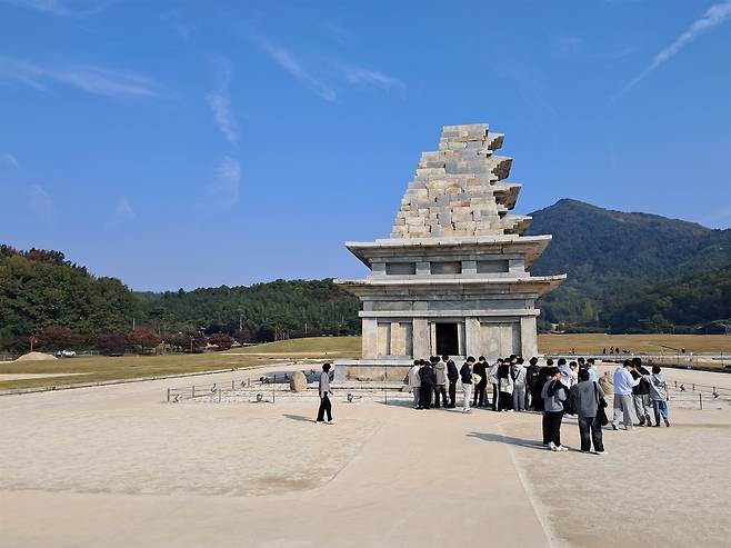 초등학생 두 아들을 데리고 온 가족도 만났다. 순천에서 출발하여 1박 2일 공주, 부여를 거쳐 미륵사지에 왔다고. 와! 백제인의 숨결을 제대로 느끼고 싶었구나. 6학년 아들은 "책에서 보던 미륵사지 석탑을 직접 보아서 좋다"고 하고 엄마는 "사찰의 건축물이 남아있지 않아서 아쉽다"라고 했다.