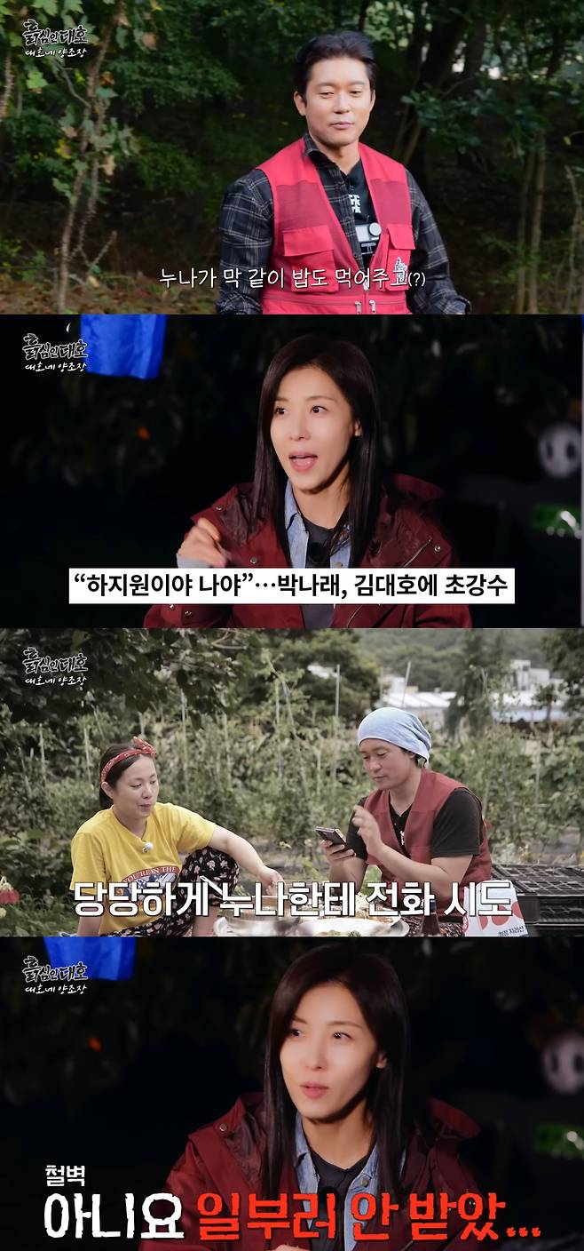 또한 하지원은 "박나래가 나온 것도 봤다. '하지원이야 나야' 이런 기사를 봤다. 그거 보고 대호가 그때 전화를 한 거구나 했다"고 이야기했다.