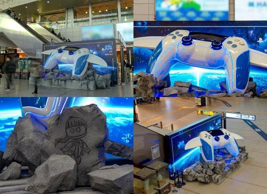 PlayStation은 타이틀의 주인공 캡틴 ‘ASTRO’가 DualSense 무선 컨트롤러 형태의 우주선 ‘듀얼 스피더’를 타고 서울역에 불시착하는 장면을 3D 조형물로 구현했다.