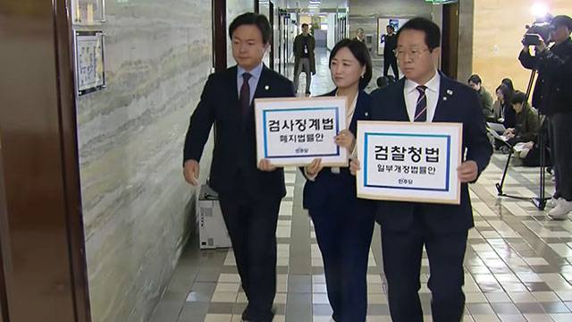 민주당 원내대변인인 김현정·문금주·백승아 의원은 오늘 오전 국회사무처에 검찰청법 개정안과 검사징계법 폐지법률안을 제출했습니다.