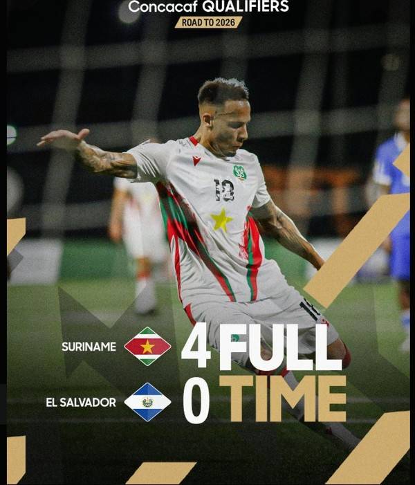 14일(한국시간) 수리남 수도 파라미라보의 프랭클린 에스드 스타디온에서 2026 국제축구연맹(FIFA) 북중미 월드컵 북중미 예선 A조 5차전을 치른 수리남이 엘살바도르에 4-0 승리를 거뒀다.