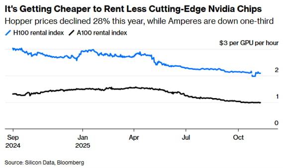 그렇다면 앞으로 주목해야 할 것은 "GPU 임대단가가 얼마나 빨리 떨어지느냐"가 될 수 있습니다. 시간이 지나도 임대단가가 천천히 떨어지면 버리의 주장이 틀릴 수 있습니다. 반대로 초과수요가 해소되고 신형 칩이 빨리 나오면서 GPU 가격이 급락하기 시작한다면 GPU 수만 개를 안고 있는 클라우드 사업자들의 자산 가치와 이익, 주가에 낀 '버블'이 무너질 수 있습니다.