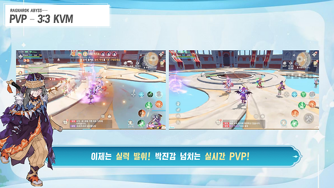 A. 기본적인 필드 PK는 불가능하지만, 특정 인스턴스 장소로 이동하여 PVP가 가능한 콘텐츠들이 많다. 라그나로크 어비스의 캐릭터 성장은 정해진 루트가 없다. 스탯을 분배하는 방식이나 스킬 트리를 선택하는 과정에서 마법 궁수가 되기도 하고, 단검을 쓰는 궁수가 되기도 한다. 이러한 선택들로 PVP에서는 다양한 전략들이 보일 것으로 예상한다.