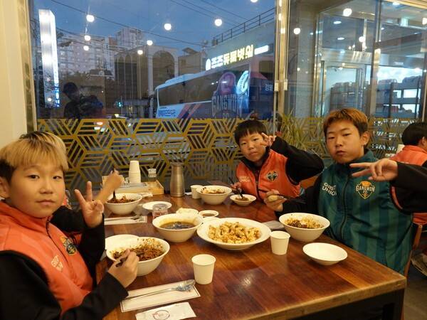 정경호 감독은 강릉을 찾은 산하 U-12 선수들에게 저녁까지 대접했다. 훈련을 마친 뒤 식당으로 모두 함께 이동해 대화를 나눴다. 오범석 코치, 장영훈 코치도 자리에 동행했다. 유소년 선수들은 그동안 궁금했던 질문을 쏟아냈고 지도자들은 아이들의 눈높이에서 친절히 응답했다. 저녁 식사를 끝으로 돌아오는 버스에 몸을 싣는 U-12 선수들의 얼굴엔 환한 미소가 걸렸다.