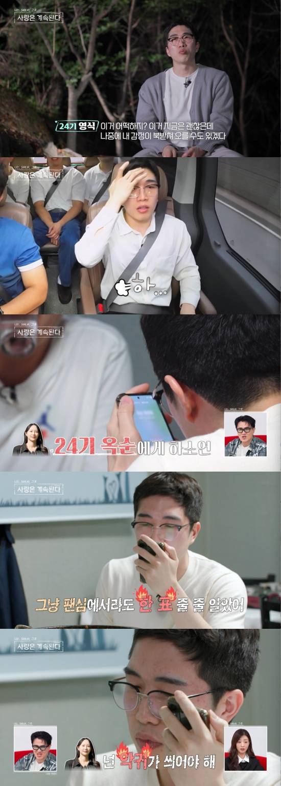 24기 영식은 형들의 위로를 받으며 돌아오던 중, 돌연 "난 돌고 돌아 24기 옥순인가? 하"라며 한숨을 내쉬었다.