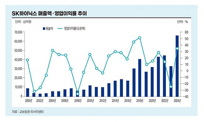앞으로 실적은 더 좋아질 것이란 관측이 많다. 업계는 내년 하이닉스의 영업이익률이 52%에 달할 것으로 보고 있다. 내년 연간 매출은 130조원, 영업이익은 70조원으로 예상된다. 이수림 DS투자증권 연구원은 “현재 디램(DRAM)과 낸드(NAND) 모두 재고가 낮은 수준에서 유지되고 있으며 생산되는 물량은 즉시 판매되는 구조”라며 “고부가가치 제품 중심의 선주문, 후생산 방식으로 사업 구조가 전환돼 회사의 기업가치가 재평가될 가능성이 충분하다”고 평가했다.