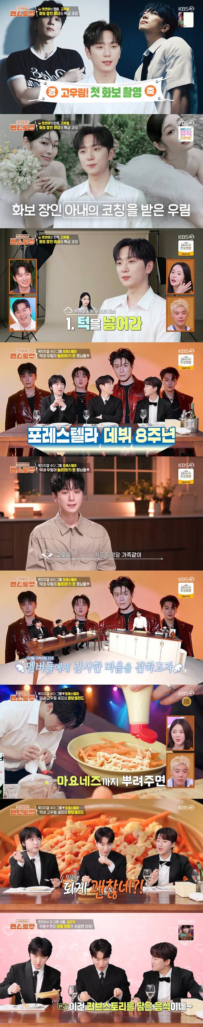 14일 방송된 KBS 2TV '신상출시 편스토랑'에서는 고우림이 포레스텔라 멤버들을 초대해 특별한 코스 요리를 대접했다.