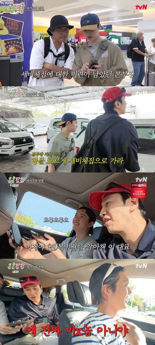 그리고 도경수의 사기극(?)이 시작됐다. 배가 고팠던 이광수와 김우빈은 차로 이동해 도경수가 안내한 라멘집을 찾아가려고 했다. 운전대를 잡은 김우빈은 의심 없이 도경수가 보낸 주소로 이동했고, 그러던 중 이광수가 이상한 점을 발견했다.
