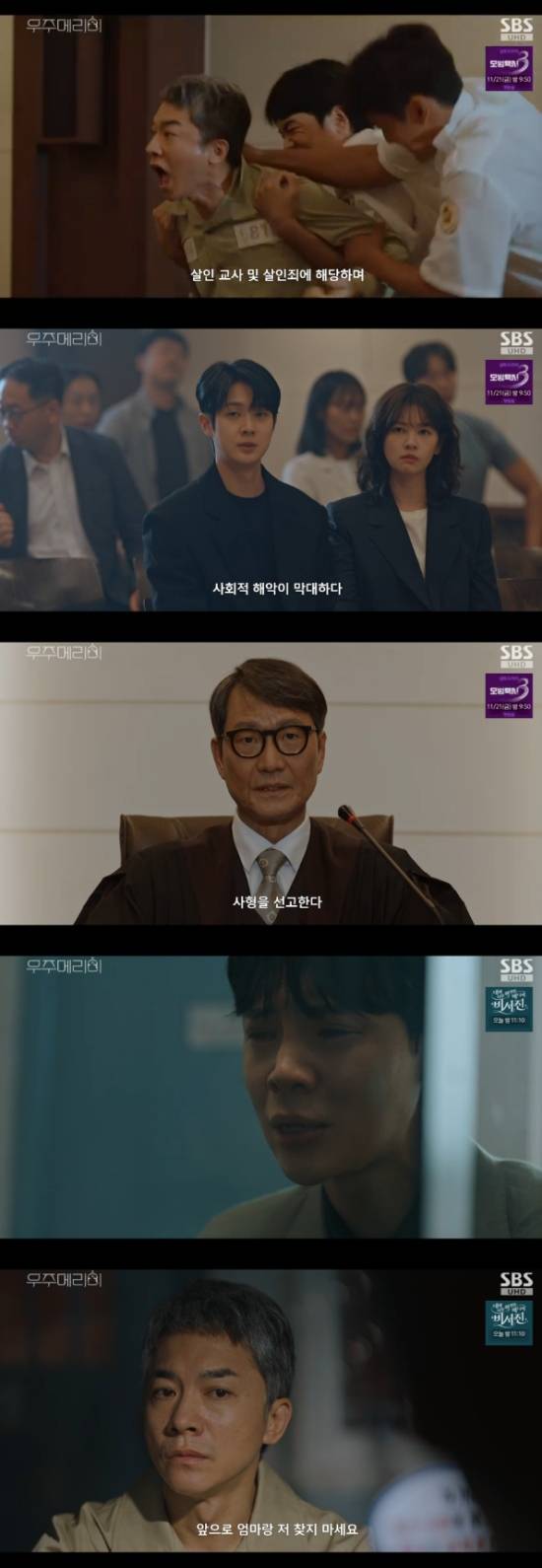 14일 방송된 SBS 금토드라마 '우주메리미' 11회에서는 유메리(정소민 분)의 전 약혼자 김우주(서범준) 때문에 위기에 놓인 김우주(최우식), 유메리의 모습이 그려졌다.