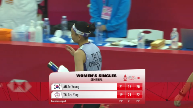 운명의 마지막 게임. 안세영이 19-10까지 치고 나가면서 승기를 잡은 것처럼 보였지만, 타이쯔잉이 무서운 뒷심을 발휘하며 내리 6점을 따라잡았다. 그럼에도 안세영이 20-16으로 매치 포인트에 먼저 도달했다. 그러나 최후의 승자는 타이쯔잉이었다. 그는 다시 한번 연달아 6점을 획득하며 22-20으로 결승 진출의 주인공이 됐다.
