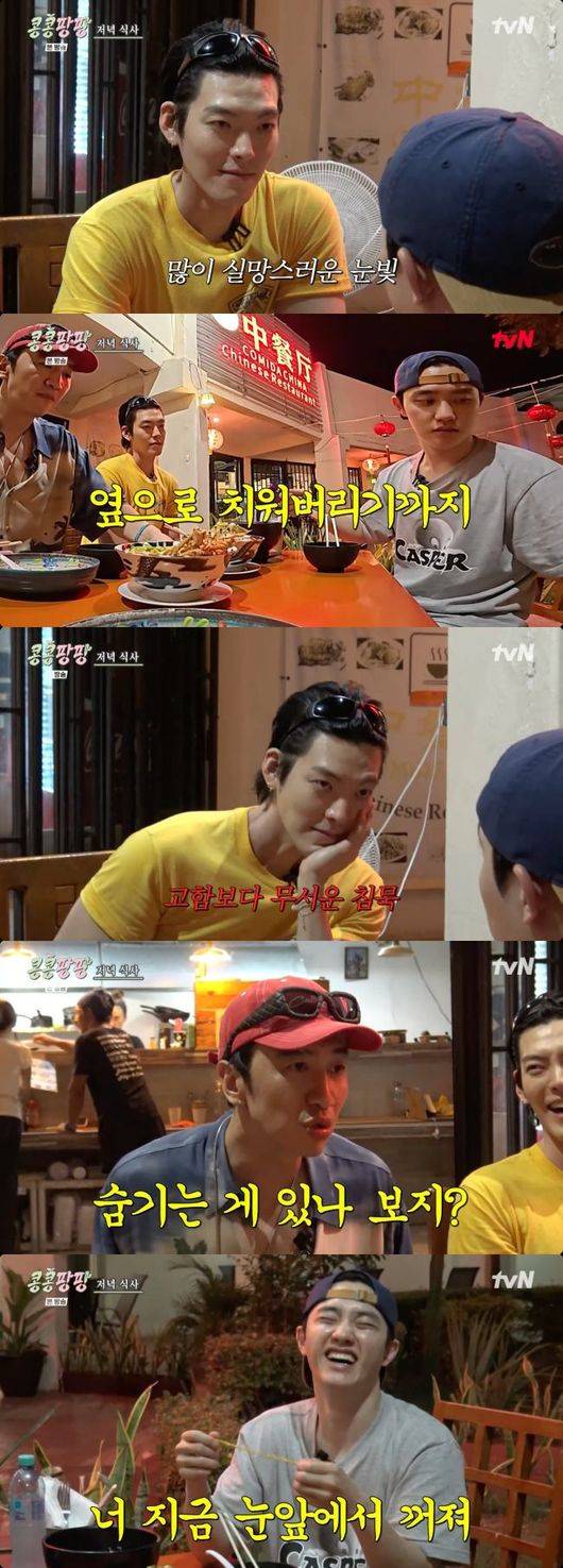 14일 오후에 방송된 케이블채널 tvN 예능프로그램 '콩콩팡팡(콩 심은 데 콩 나서 웃음팡 행복팡 해외탐방)'에서는 칸쿤에서의 첫 날을 즐기는 이광수와 김우빈, 도경수의 모습이 그려졌다.
