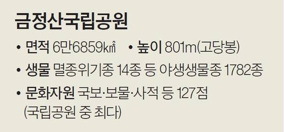중앙SUNDAY가 입수한 ‘금정산 국립공원 지정 계획안’에 따르면 기후부는 현재 연 312만명인 방문객이 399만명으로 늘어날 것으로 기대하고 있다. 부산연구원은 금정산의 경제적 가치가 6조6200억이라고 밝힌 바 있는데, 기후부는 이 역시 국립공원 지정 후 증가할 것으로 보고 있다.