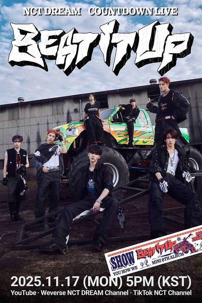 오는 17일 오후 6시, 엔시티 드림의 여섯 번째 미니앨범 'Beat It Up'이 공개된다. 신보는 타이틀곡 'Beat It Up'을 포함한 다채로운 분위기의 총 6곡으로 구성돼 있다.