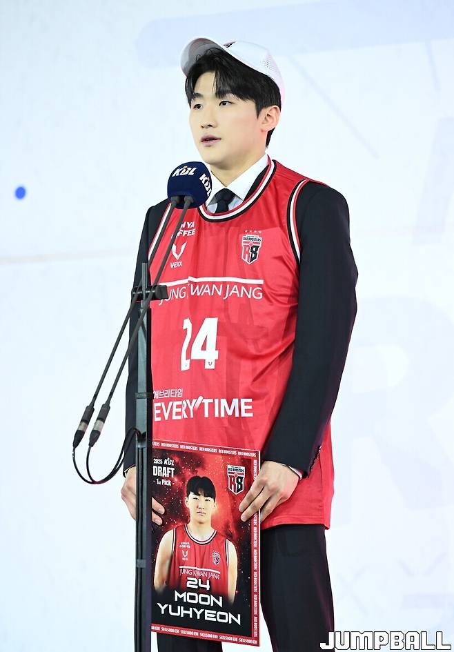14일 잠실학생체육관에서 열린 2025 KBL 신인선수 드래프트. 전체 1순위로 안양 정관장이 문유현의 이름을 호명하자 누구보다 기뻐한 이가 있었다. 바로 어머니 박영희 씨였다. 지난 2023년 다리를 다쳐 첫째 문정현의 지명 순간을 보지 못했던 박영희 씨는 현장에서 둘째 문유현이 프로로 향하는 걸 지켜봤다. 이모들 역시 함께해 조카에게 축하의 인사를 건넸다.