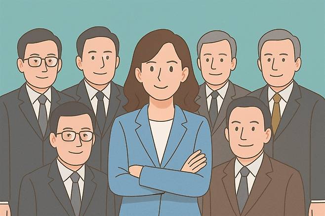 | ▲ 기업 내 남성임원과 여성임원의 모습. AI 생성 일러스트. |