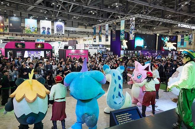 올해 크래프톤 부스는 일본 게임사 포켓페어(Pocketpair, Inc.)의 '팰월드(Palworld)' 지식재산권(IP)을 기반으로 개발 중인 '팰월드 모바일'을 중심으로 꾸며졌다.