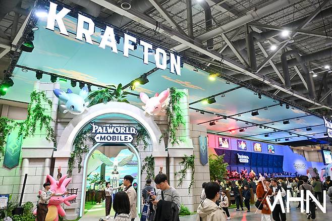 올해 크래프톤 부스는 일본 게임사 포켓페어(Pocketpair, Inc.)의 '팰월드(Palworld)' 지식재산권(IP)을 기반으로 개발 중인 '팰월드 모바일'을 중심으로 꾸며졌다. 개막 직후부터 시연을 체험하려는 관람객이 몰리며 부스 앞에는 최대 2시간 30분 이상 기다려야 할 정도의 긴 대기줄이 형성됐다. 관람객들은 원작의 재미를 모바일에서도 충실히 구현했다는 점, 다양한 팰들과 함께 오픈월드를 탐험하는 즐거움, 스킬 기반 전투의 몰입감 등을 시연 후기를 통해 전했다.
