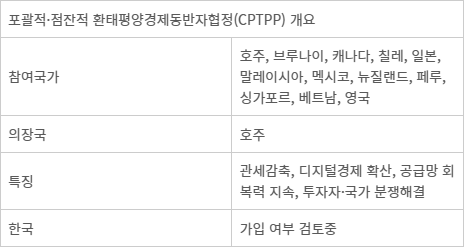 최근 미국발 관세전쟁으로 통상 불확실성이 커지면서 한국을 포함한 각국이 CPTPP 가입에 대한 논의가 속도를 내는 모양새다. 시장 확대와 안정적인 교역 기반 확보를 위해서 그리고 한국과 유사한 경제·통상 입장을 가진 국가들과의 경제동맹 네트워크를 강화하려는 전략적 판단에서다.