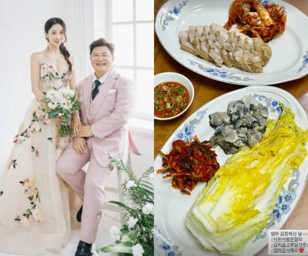 원진서는 지난 14일 "엄마 김장하신 날. 사위 사랑은 장모. 김치 골고루 담가주심. 엄마 감사해요"라고 했다.