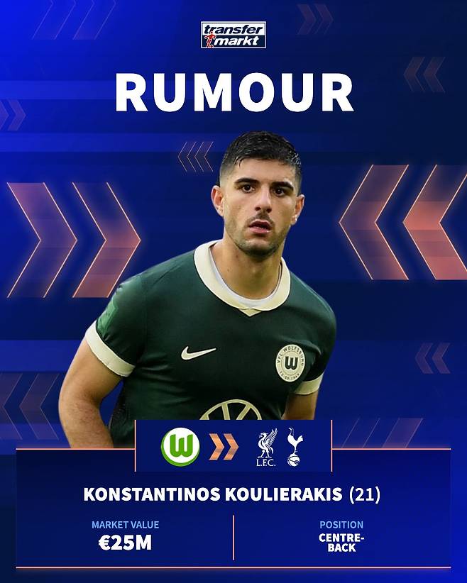 토트넘이 같은 잉글랜드 프리미어리그(EPL)에서 경쟁하는 리버풀을 제치고 콘스탄티노스 쿨리에라키스(21·볼프스부르크)를 영입할 거란 전망이 나왔다.